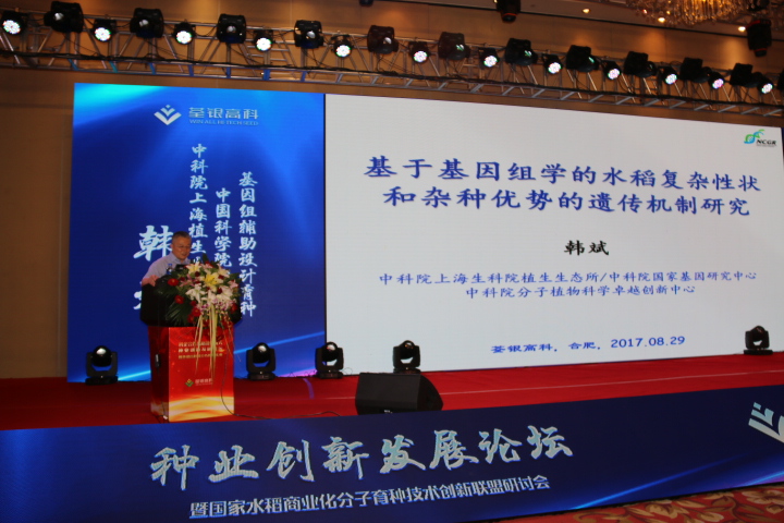 創(chuàng)新驅(qū)動,助力發(fā)展。2 9日下午,荃銀高科舉行種業(yè)創(chuàng)新發(fā)展論壇暨國家水稻商業(yè)化分子育種技術(shù)創(chuàng)新聯(lián)盟研討會,中國科學(xué)院院士、中科院上海植生生態(tài)所所長韓斌,北京市農(nóng)林科學(xué)院玉米研究中心主任趙久然分別就“基因組輔助設(shè)計育種”和“玉米科研及產(chǎn)業(yè)發(fā)展方向”作了報告。荃銀高科副總經(jīng)理張從合進(jìn)行了“荃銀高科15周年科研成果及產(chǎn)業(yè)發(fā)展”情況匯報。