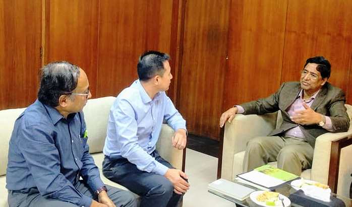 ??? 會(huì)見伊始,拉扎克部長(zhǎng)對(duì)荃銀高科一行來訪表示熱烈歡迎,在聽取了荃銀高科過去十多年間在孟加拉推廣雜交水稻與優(yōu)質(zhì)蔬菜等農(nóng)作物良種、開展本土化品種選育和種子生產(chǎn)情況匯報(bào)后,給予高度贊賞與肯定。拉扎克部長(zhǎng)介紹了孟加拉糧食生產(chǎn)及農(nóng)業(yè)現(xiàn)狀,農(nóng)業(yè)部當(dāng)前鼓勵(lì)農(nóng)民以非傳統(tǒng)種植代替過去的傳統(tǒng)作物種植,以獲得更高經(jīng)濟(jì)效益。他建議,荃銀高科作為中國(guó)知名種業(yè)高科技企業(yè),對(duì)亟待加強(qiáng)的孟加拉食品加工業(yè)進(jìn)行投資,該國(guó)農(nóng)業(yè)部將在企業(yè)用地、擴(kuò)大規(guī)模方面給予支持,提供保障。他表示,將對(duì)荃銀高科與孟加拉農(nóng)業(yè)部農(nóng)業(yè)發(fā)展公司在雨季水稻新品種選育及種子生產(chǎn)領(lǐng)域方面的合作給予積極支持。